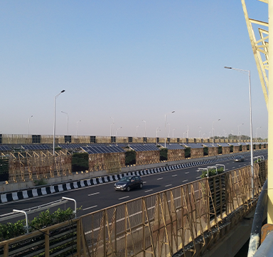 The Solar rooftop system of 1 MW capacity installed on Nizamuddin bridge in New Delhi offsets electricity consumption of LED Streetlight on the stretch and supplies additional energy generated to the grid (through net metering system).